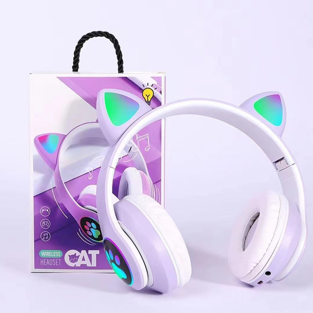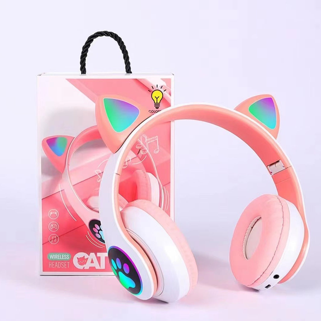 Cute Cat Ear Wireless Headphones- LED Lights, Noise Cancelling & Bluetooth 5.0
