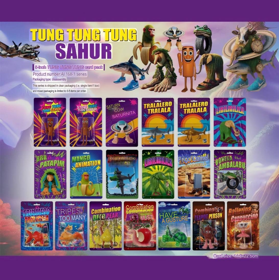 Italian brainrot toys made from kid-friendly Abs plastic 3D printing with smooth rounded edges. These shark and animal themed toys are high quality and odourless, making them perfect for safe play and partying with your child!