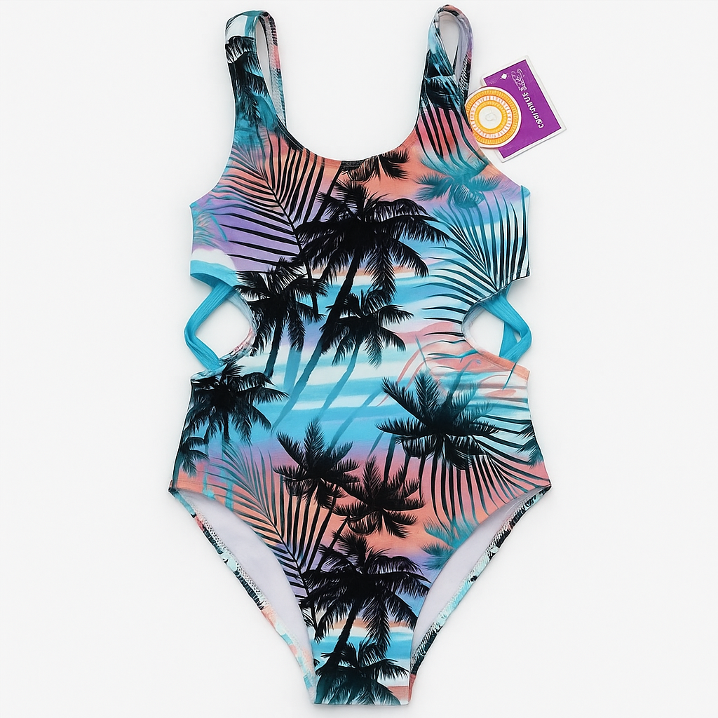 This Cute Swimsuit 1pc is perfect for children aged 6-12 years old. It features a playful palm design that adds a touch of fun to any pool or beach day. Made from high-quality materials, this swimsuit offers comfort and durability for all-day wear. Let your child make a splash in style with this adorable swimsuit.
