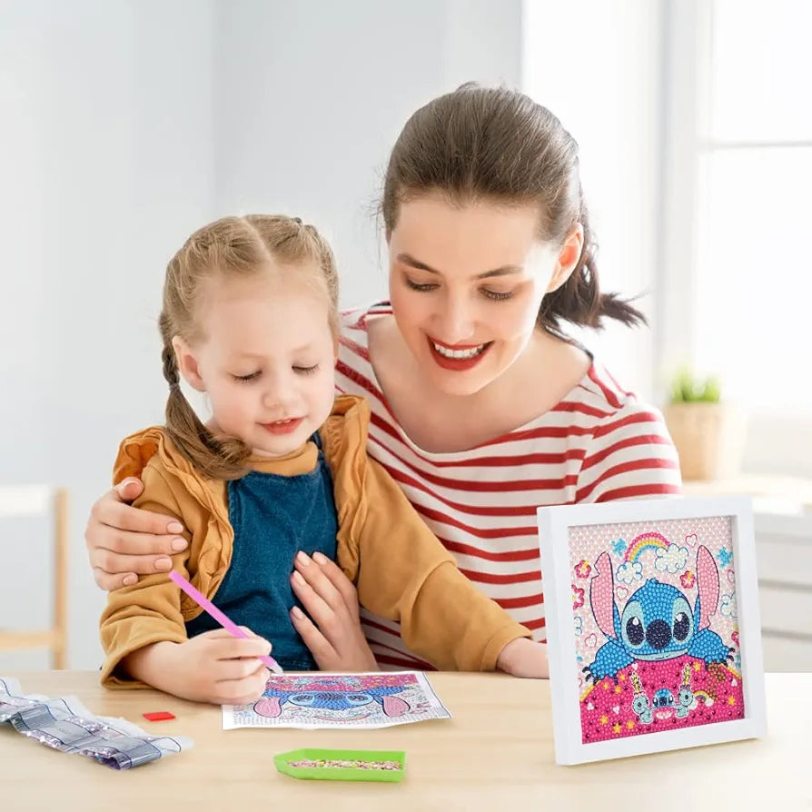 Kids Diamond Painting If you're looking for a simple yet fun and engaging way to keep your children entertained, diamond painting is an excellent choice. The diamond painting kit kids can use comes equipped with all the must-have essentials, including Pattern painting,enough rhinestones,one diamond painting pens, one trays, and one wax glue squares and one picture frame.