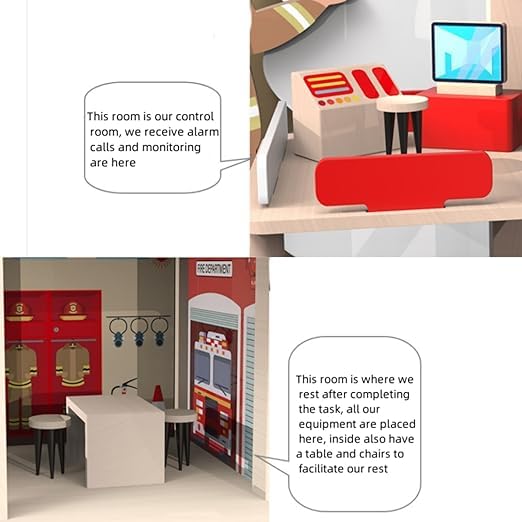 Fire Station Wooden Playset Toy Stimulates Key Motor Skills and Promotes Team Play