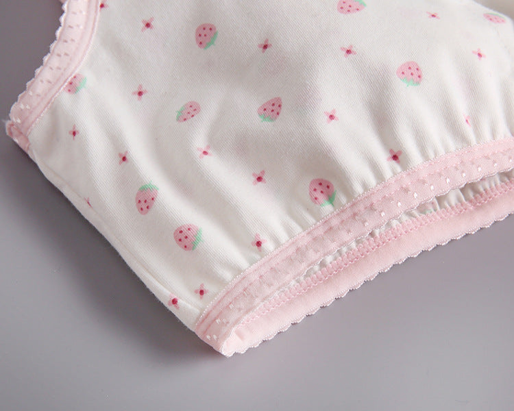 Girls Cotton Bras (4 pcs) – Thin Straps Strawberry | Size 6–12Y