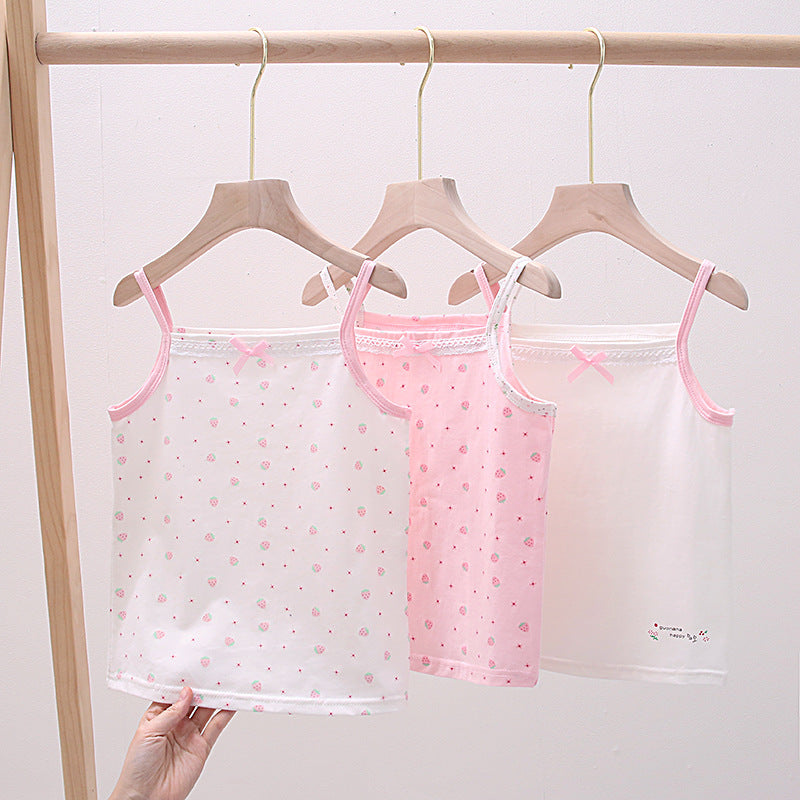 T Girls Cotton Undershirts for Kids Toddler Lace Soft Strawberry Set 3-12y 3pcs