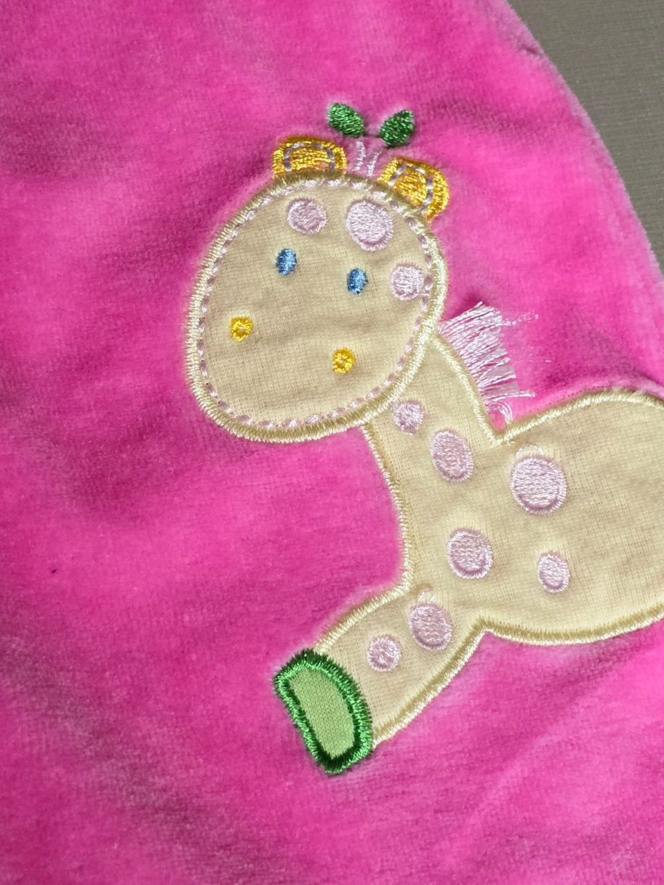 Keep your little one cozy and comfortable in this soft pink fleece baby jumpsuit. Designed with adorable giraffe embroidery and bear-shaped footies, it combines warmth and style for everyday wear or bedtime. The two-sided snap opening along the legs makes it easy to dress and change your baby without fuss. Crafted from gentle, breathable fabric that feels smooth on delicate skin, this jumpsuit ensures all-day comfort and warmth.