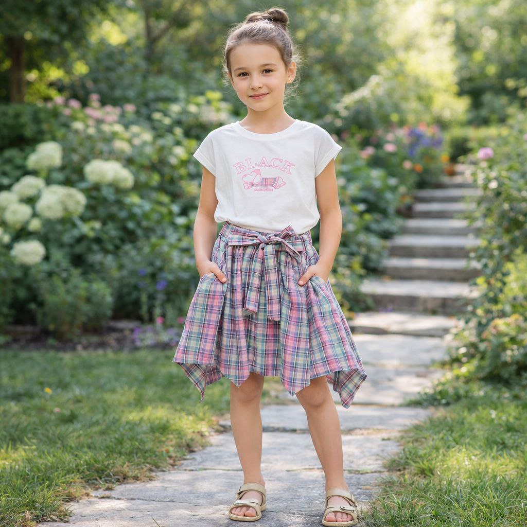 Girls Cotton Short-Skirt Set – Soft Summer Outfit (9-10Y)