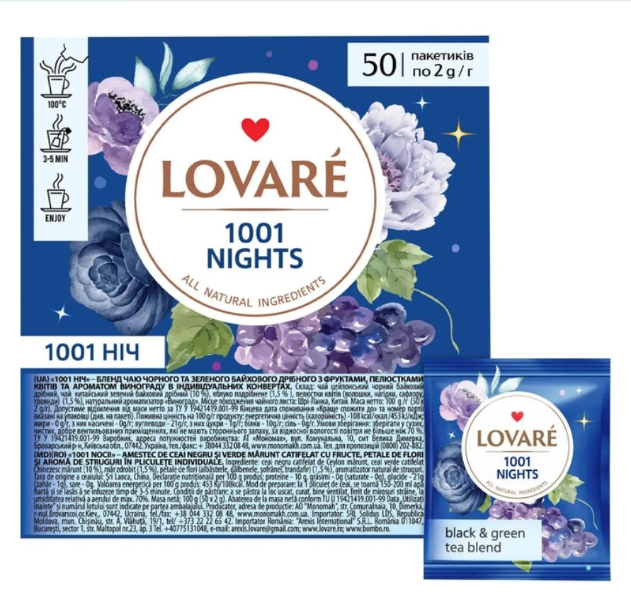 Night that steeped in magic brings your innermost desires in life. Impetuous Black Ceylon Tea and Sencha Green Tea fragrances are harmoniously combined with the pieces of rich apple and petals of wonderful flowers, magic rose buds and velvet grape accord – abundance of tastes that makes your dreams come true.