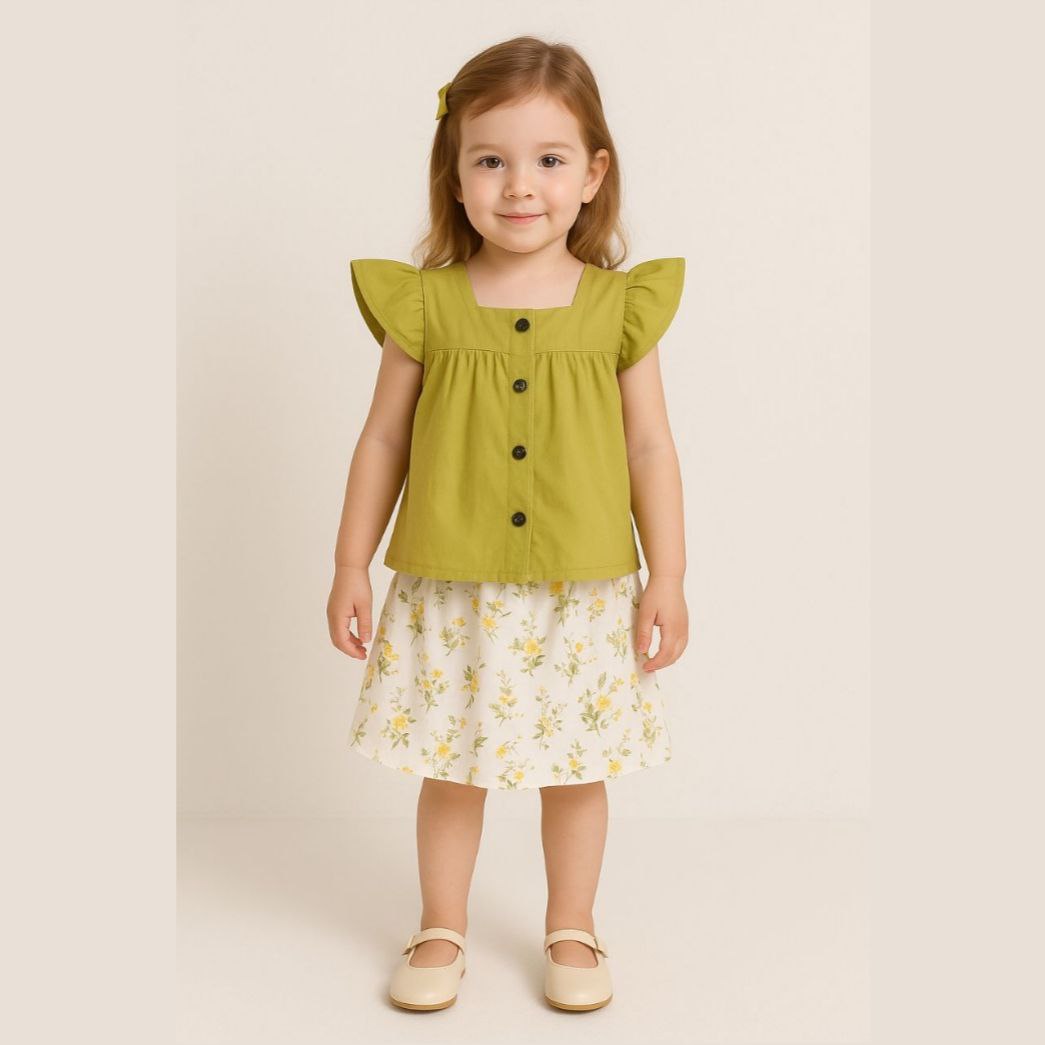 .Ruffle Sleeve Square T-shirt&Tutu Casual Dress Set For 1-8y