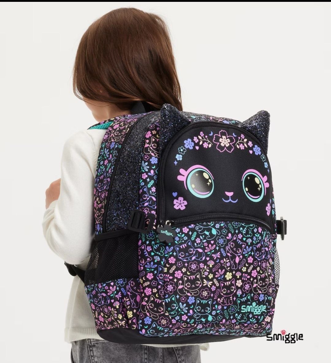 Kids backpack from smiggle has three zipped compartments to stash stationery, tech, snacks and more! Plus dual drink bottle sleeves and padded adjustable shoulder straps. It also has handy side clips that attach to our Epic Adventures Oblong Attach Lunchbox for easy lunch storage.
