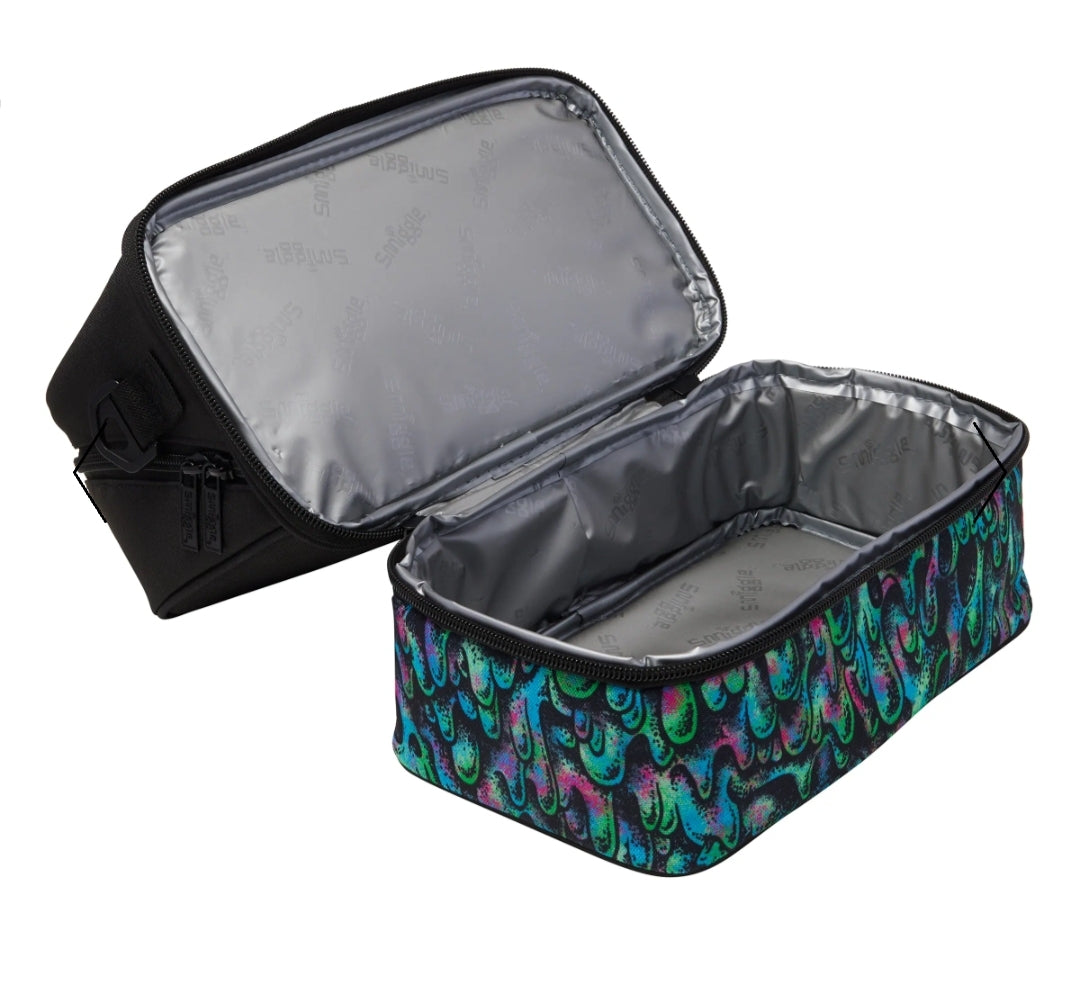 Protect lunchtime goodies with our Surreal Hardtop Lunchbox With Strap. This insulated lunchbox keeps food fresher for longer, ready for when the hunger hits! Features a fun embossed hardtop front specifically designed to help ensure lunches don't get squished. The two tiered design helps to separate lunch from snacks, with an adjustable and removable shoulder strap for the flexibility to carry it on the shoulder or in a bag, plus a drink bottle sleeve for on-the-go use during all activities! Pair this lunchbox with our Small Bento to organise and separate snacks.