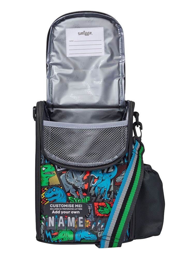 This lunch bag features insulated lining to keep tasty treats cool all day long, plus a super handy drink bottle sleeve and carry strap for on-the-go use. Level it up by personalizing it with their name! .Customizable name display,54 tear-out cardboard letter cards,8 ID window pockets ,Applique detailing, BPA free and food safe lining, Insulated and easy to wipe lining, Keeps your lunch cool, Main compartment with double zip, Bottle sleeve ,Adjustable and removable shoulder strap, Carry handle, Internal Name label.