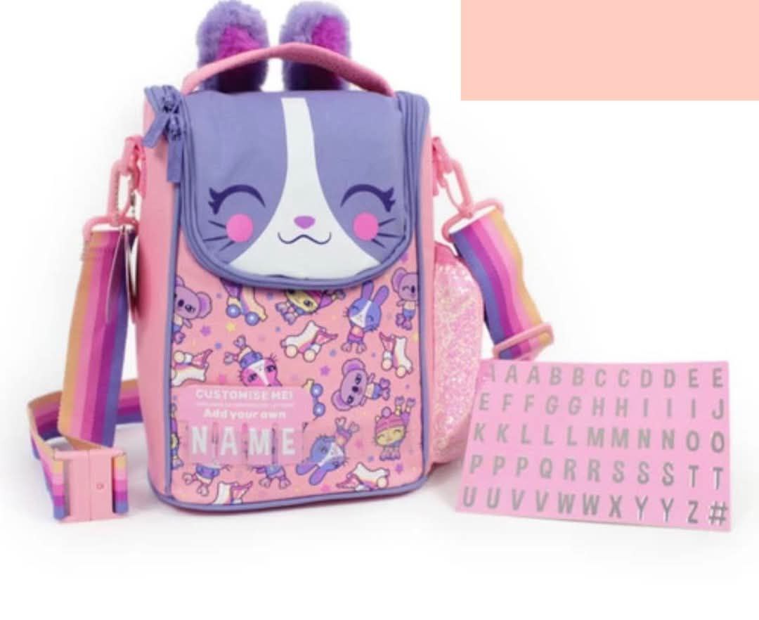 This lunch bag features insulated lining to keep tasty treats cool all day long, plus a super handy drink bottle sleeve and carry strap for on-the-go use. Level it up by personalizing it with their name! .Customizable name display,54 tear-out cardboard letter cards,8 ID window pockets ,Applique detailing, BPA free and food safe lining, Insulated and easy to wipe lining, Keeps your lunch cool, Main compartment with double zip, Bottle sleeve ,Adjustable and removable shoulder strap, Carry handle, Internal Name label.