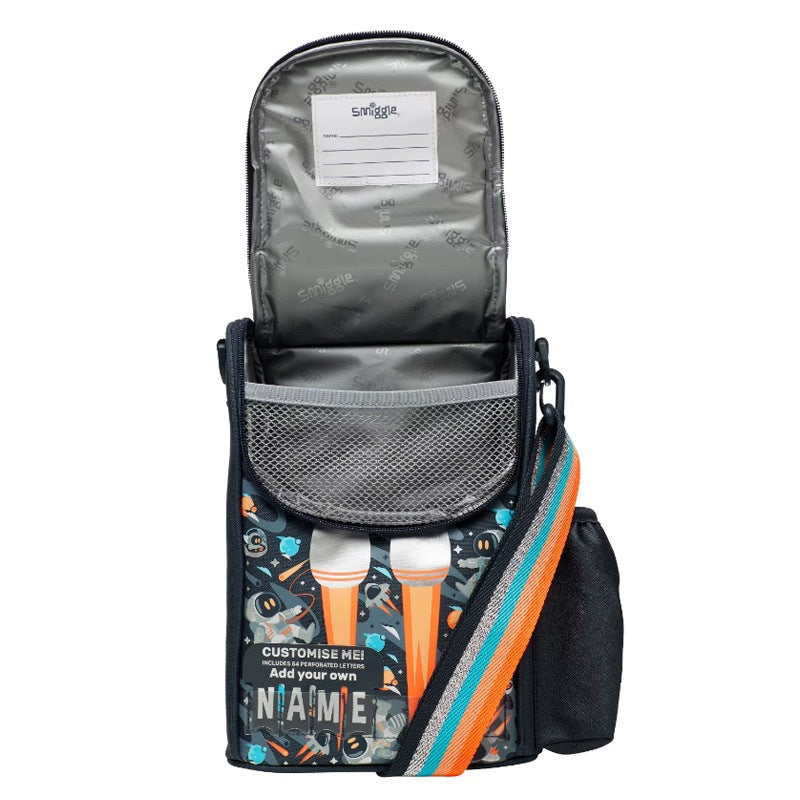 This lunch bag features insulated lining to keep tasty treats cool all day long, plus a super handy drink bottle sleeve and carry strap for on-the-go use. Level it up by personalizing it with their name! .Customizable name display,54 tear-out cardboard letter cards,8 ID window pockets ,Applique detailing, BPA free and food safe lining, Insulated and easy to wipe lining, Keeps your lunch cool, Main compartment with double zip, Bottle sleeve ,Adjustable and removable shoulder strap, Carry handle, Internal Name label.