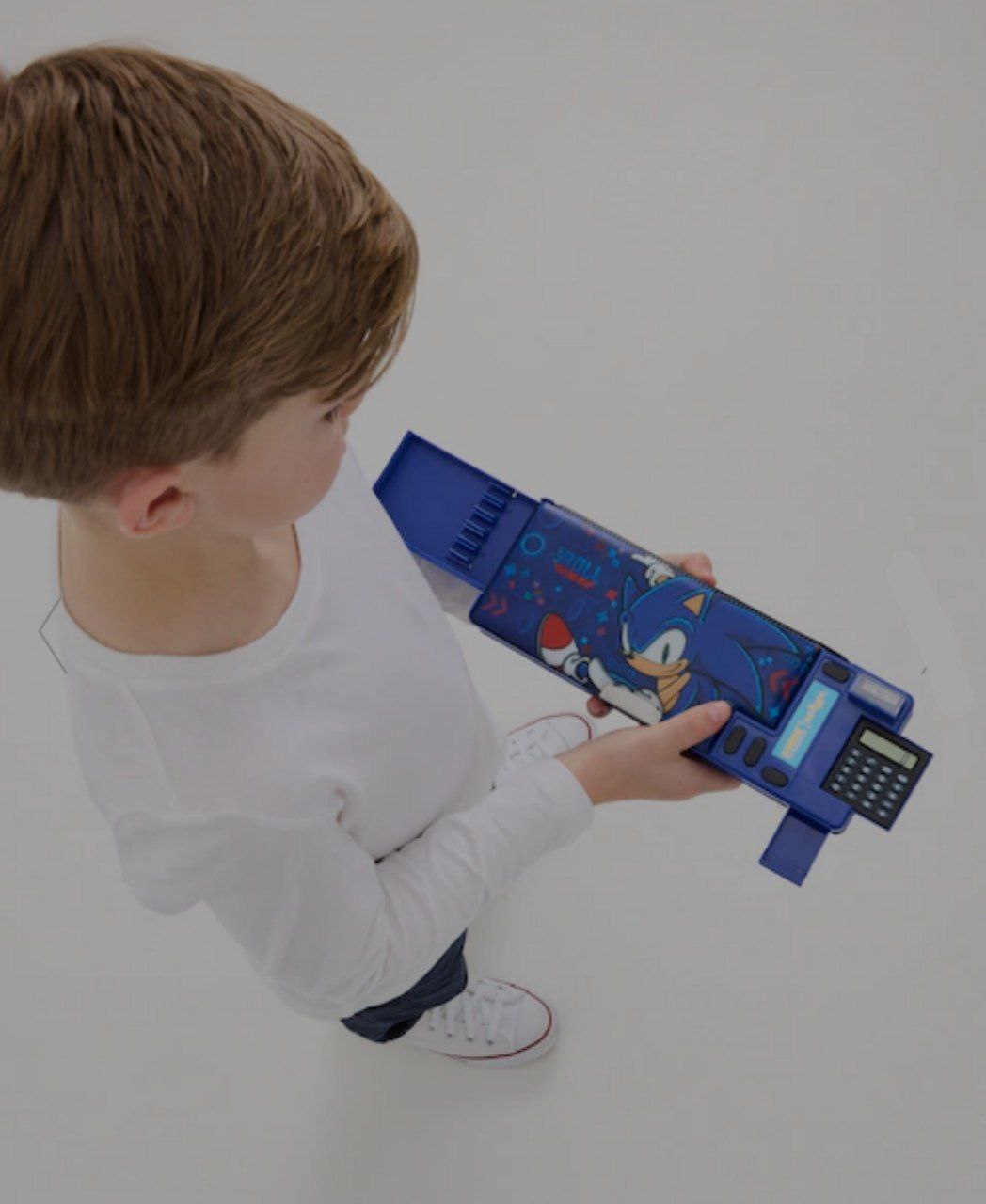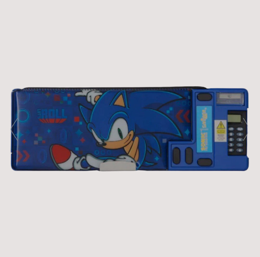 Speed meets style in our Sonic the Hedgehog Pop Out Pencil Case. Featuring a lenticular design, move the pencil case to see the blue blur in action! Press the interactive buttons to reveal secret stationery surprises including a calculator and sharpener. Open up for plenty of extra space to organise Smiggle pens and pencils, plus a slot for a school timetable.
