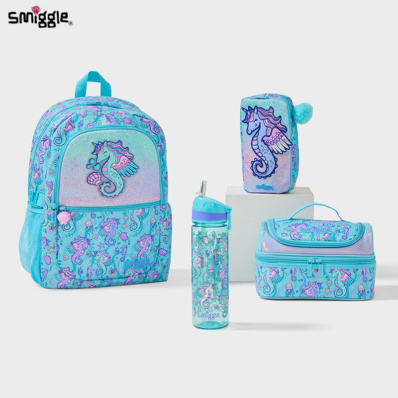 Smiggle Sea Horse Design Set Of 3pcs Bottle Lunch Bag Backpack 42cm