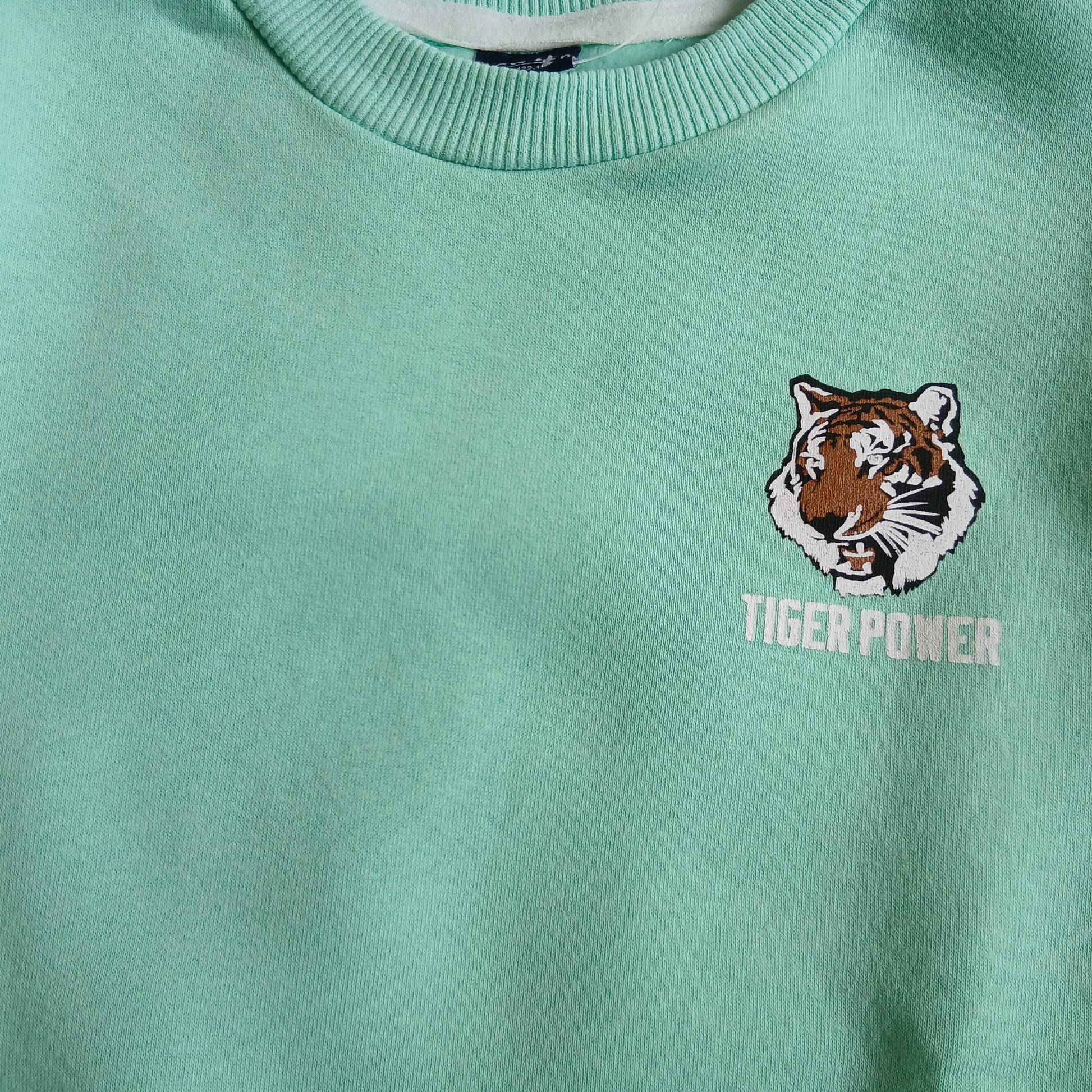 Sweater With Fleece Mint Color Tiger Power Design Size 7-8y