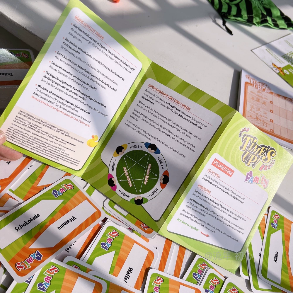In the feel-good party game Time's Up Family you try to have your teammates guess as many animals, objects and professions as possible in 30 seconds. You do this by describing or portraying these concepts.