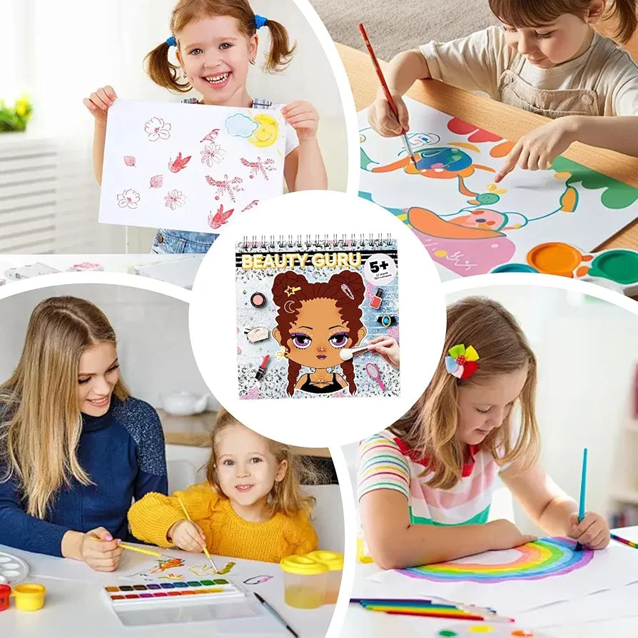 - It is a beginner-friendly sketchbook designed for kids aged 6 and up, allowing them to draw makeup looks, hairstyles, and nail designs on pre-printed model outlines.
